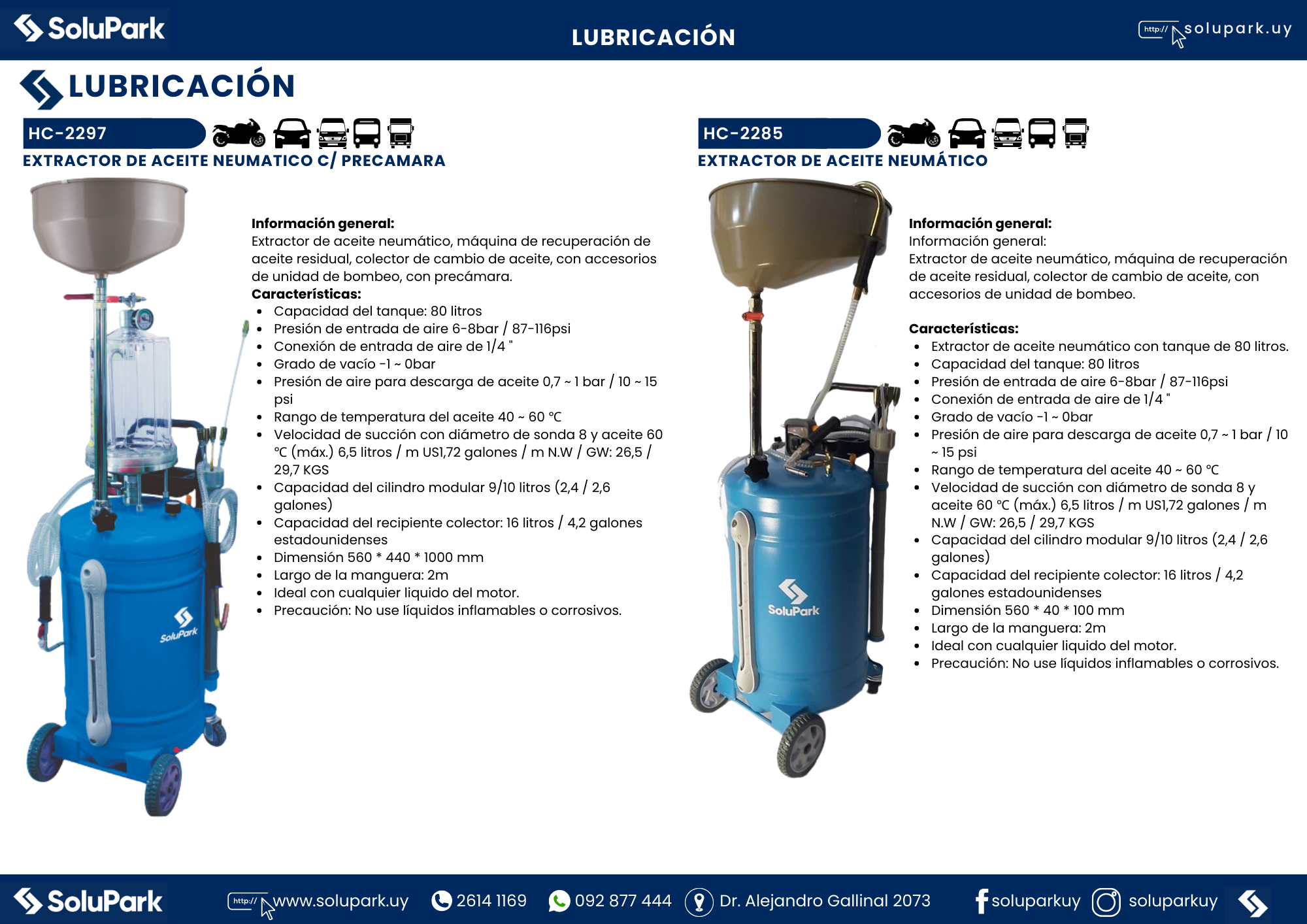 Velocidad de succión con diámetro de sonda 8 y aceite 60 ℃ (máx.) 6,5 litros / m US1,72 galones / m N.W / GW: 26,5 / 29,7 KGS