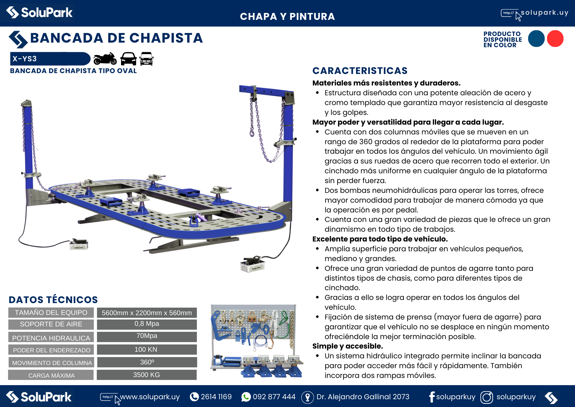 - Amplia superficie para trabajar en vehículos pequeños, mediano y grandes.